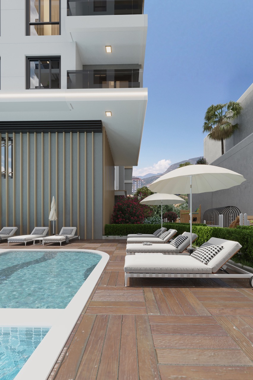 Located in the heart of Mahmutlar, this modern residential complex offers a vibrant lifestyle with outstanding architecture and rich social amenities. Built on a secure area of 2,935 m², the project features 90 apartments designed for comfort, style, and practicality.